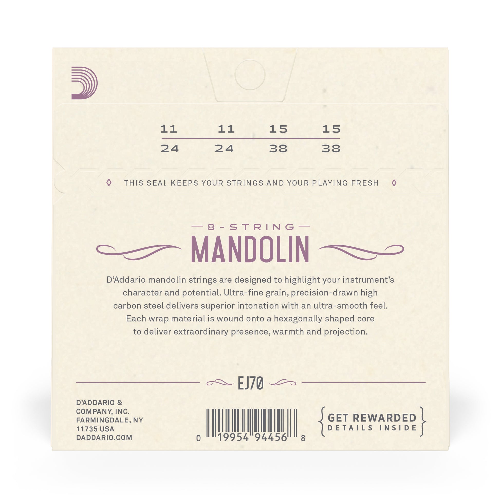 D'Addario mandolin strings are trusted by legends like David Grisman, Ricky Skaggs, Ronnie McCoury, Doyle Lawson, Rhonda Vincent, Mike Marshall, Adam Steffey, and more, for their natural acoustic tone and reliable performance. They are made from the highest quality plain steel, stainless steel, nickel plated steel and phosphor bronze and are available in a wide variety of gauges.